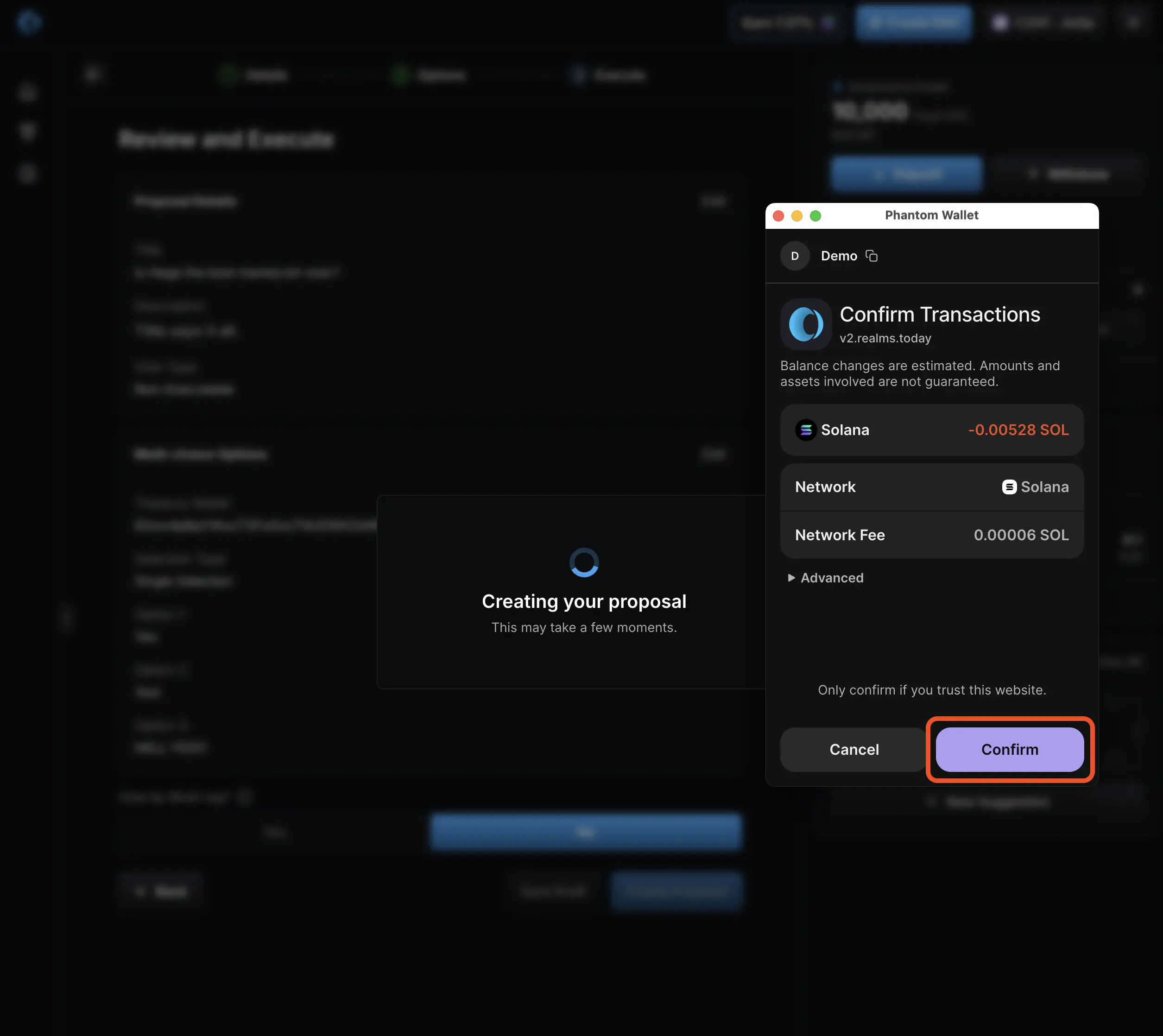 - Select “No” on vote by multi-sig. Then click “Create Proposal”.