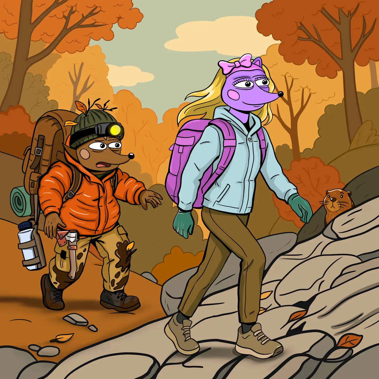 Hegena strides confidently through the autumn wilderness. Hege follows, buried under enough equipment to summit Everest and start a hardware shop. Mud, anxiety, and a marmot witness his struggle.